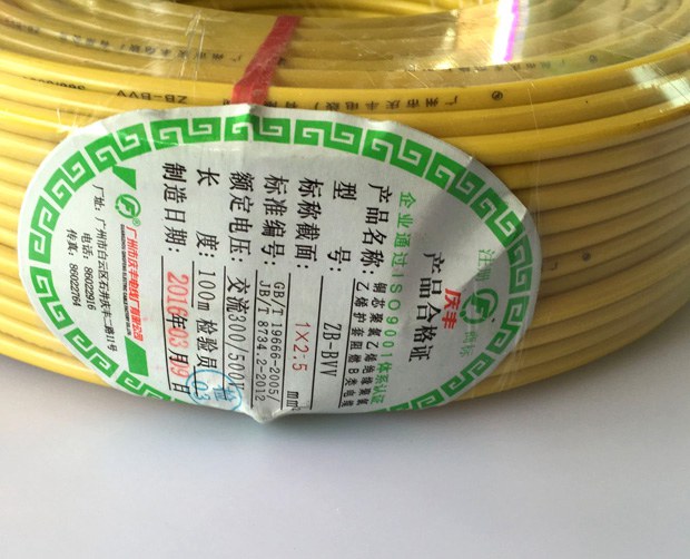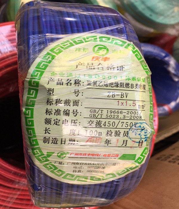 廣州慶豐電纜ZB-BVV阻燃B級(jí)家裝電線(xiàn)